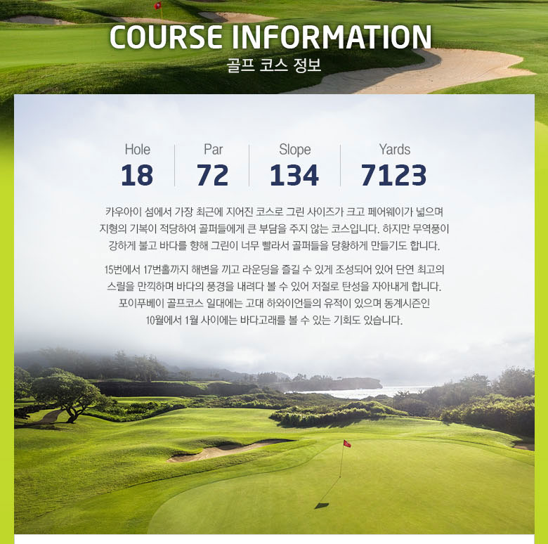 - Tee Time 확정 바우처 제공 (렌터카 등 개별적으로 골프장 이동 및 체크인)