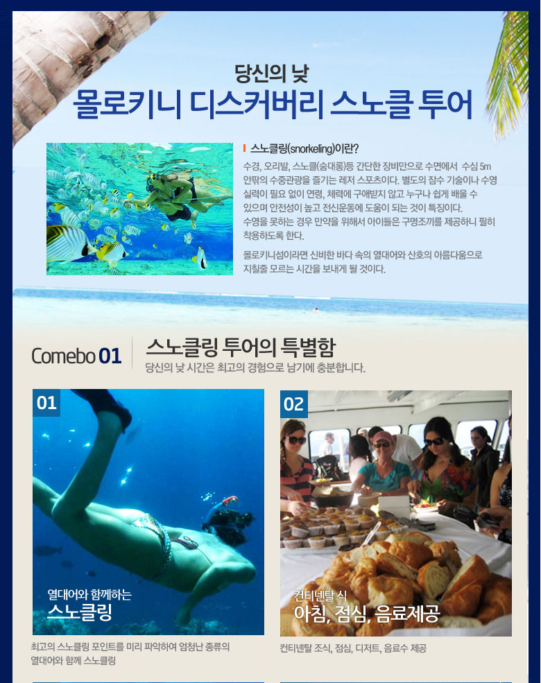 - 스노클링 장비와 강습 포함