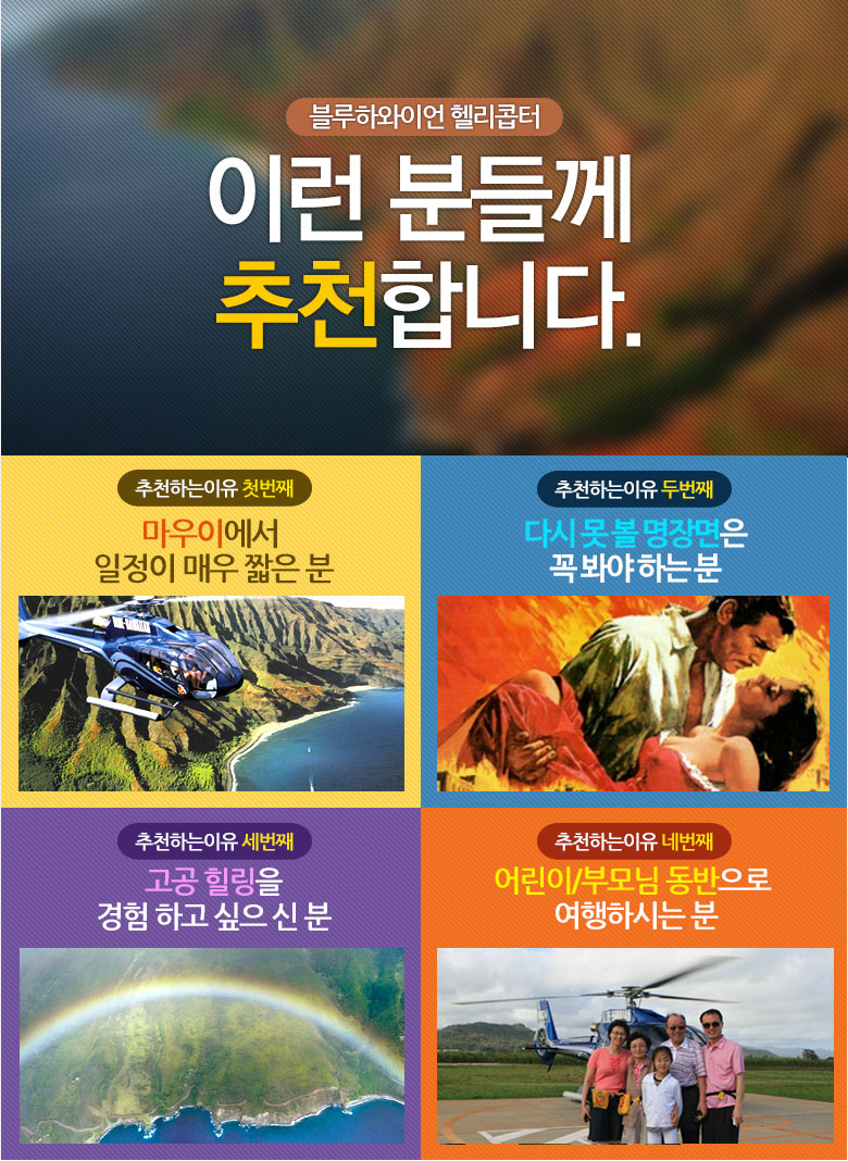 | 2 | 11/5(화) 헬기투어 예약 가능여부 확인 부탁드립니다. (1) | J*a | 10-22 |
